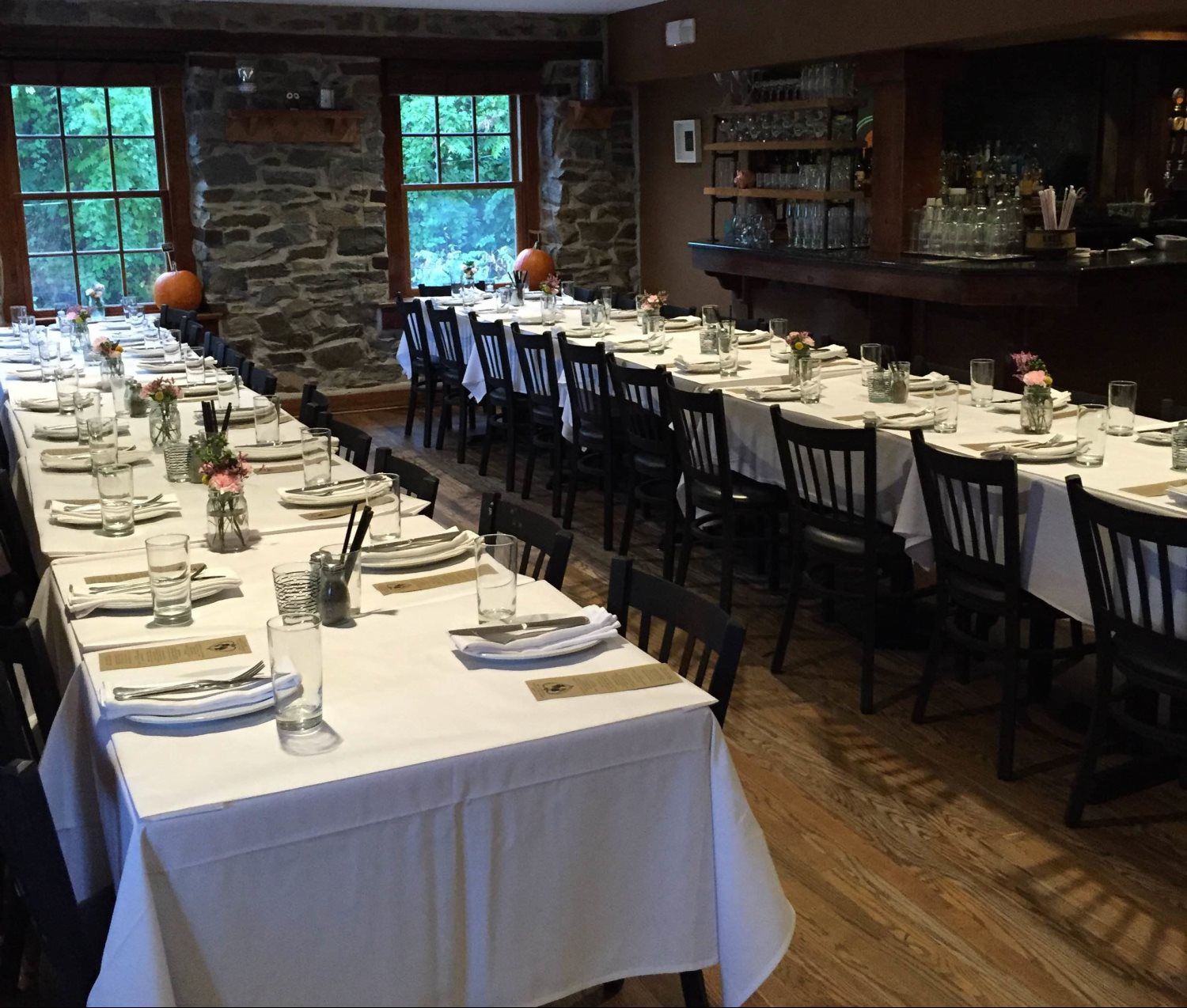 Our two dining rooms and spacious bar area can accommodate up to 300 guests. Our Upstairs Dining Room seats up to 50, and 60 guests for a standing cocktail reception. Main Dining Room seats 42; Bar/Lounge seats 84, and Outside patio seats 32. Buy-outs are available as well as private and semi-private events. For more information about our private dining, please complete the form below.